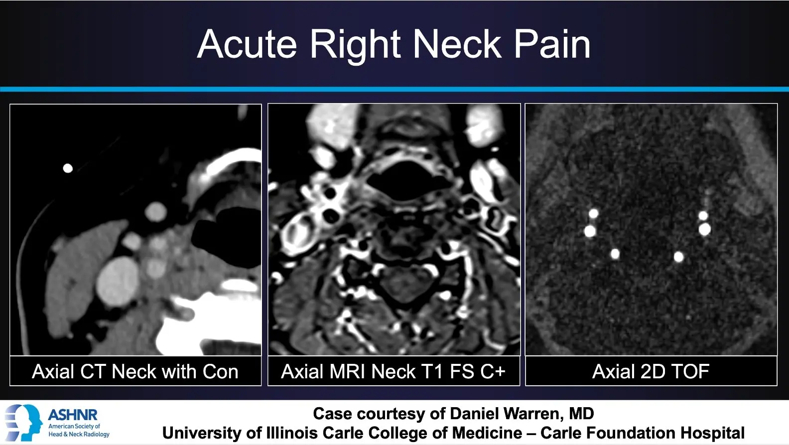 CT, MRI, and MRA case of TIPIC syndrome (acute idiopathic carotidynia) presenting with right neck pain. By Daniel Warren, MD, Carle Foundation Hospital.